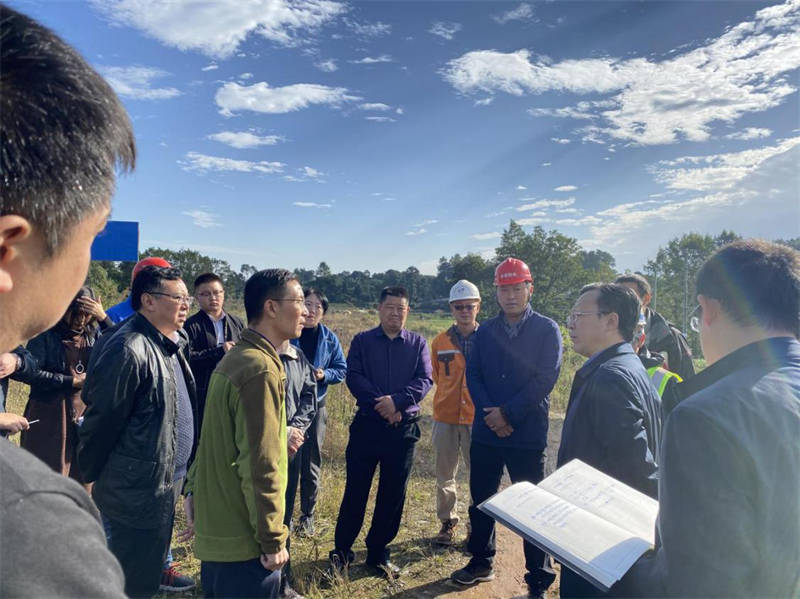 鄒瑾一行先后實(shí)地踏勘全線三個(gè)標(biāo)段的施工現(xiàn)場(chǎng),對(duì)照規(guī)劃圖紙了解施工進(jìn)展情況。