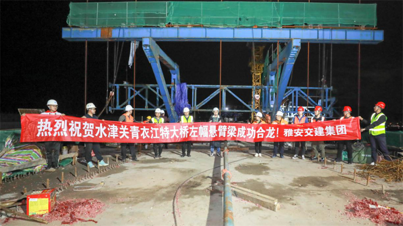 10月31日,成雅快速通道控制性工程水津關青衣江特大橋左幅懸臂梁成功合龍,標志著大橋主橋部分正式進入合龍階段,為跨江架設預制梁提供了縱向通道,也為年底實現(xiàn)半幅貫通打下了堅實基礎。