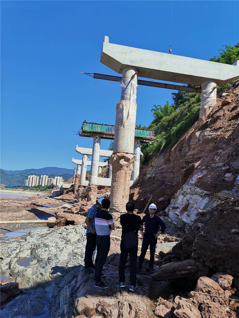 8月26日,項目公司邀請西南交通大學結(jié)構(gòu)專家到省道104線草壩至姚橋段、草壩青衣江大橋(茶地坎碼頭渡改橋)、多營青衣江大橋(搭溝漩碼頭渡改橋)等涉水工程項目進行現(xiàn)場踏勘,檢查橋梁墩臺、防護工程結(jié)構(gòu)等情況,并就相關項目安全狀況及結(jié)構(gòu)物的加固提出了專業(yè)意見。