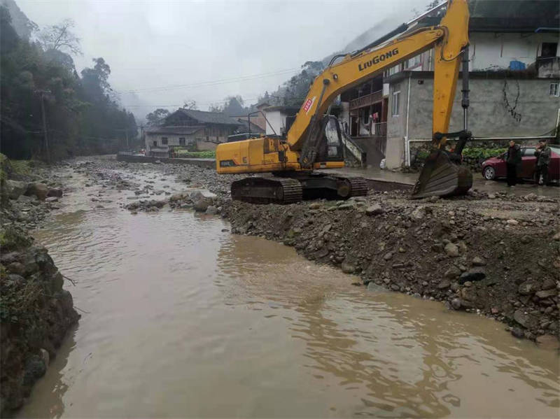 因受去年“8.11”洪災(zāi)影響,蘆山縣太平鎮(zhèn)鐘靈村棕樹坪電站段河道大量淤積體導致河床抬升,低洼處民房距水面不足1米。為有效解決河道淤塞影響行洪等問題,提升河道流通能力,確保河道行洪通暢和周邊群眾生命財產(chǎn)安全,在今年汛期來臨前,按照蘆山縣政府工作安排,云石公司組織人員12人、挖掘機1臺、運渣車5臺,對河道進行應(yīng)急清淤,預(yù)計挖方量5000余方。