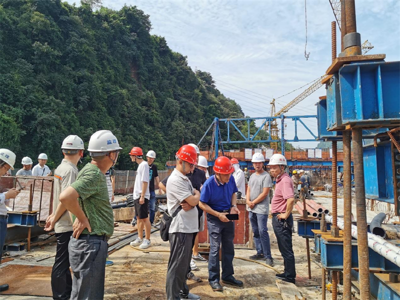 為保證工程質量、安全,平穩(wěn)推進工程建設,8月24日,雅安交建集團特邀省橋梁專家對雨名快速通道項目成雅高速跨線橋、草壩青衣江大橋等在建橋梁施工質量、安全進行檢查,并對項目建設中的掛籃全封閉施工、掛籃行走、橋梁合龍、掛籃拆除等重點工作提出意見建議。