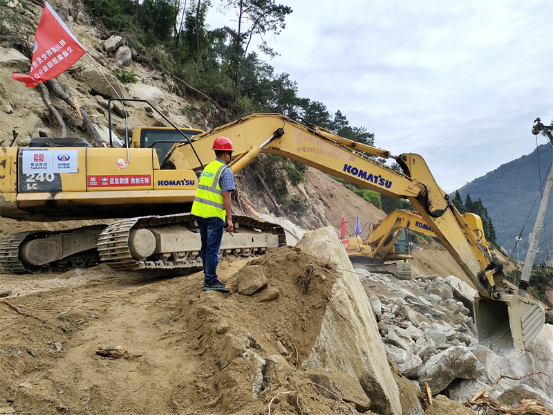 災(zāi)情就是命令,時間就是生命!交建集團(tuán)聞令而動,集團(tuán)黨委迅速啟動應(yīng)急響應(yīng)機制,路橋公司火速調(diào)集石棉108線項目人員機具,第一時間馳援搶通一線;發(fā)出倡議,動員黨員干部增補力量,全力投身搶通保暢任務(wù)。在山崩地裂、亂石嶙峋間穿插著一抹挺身而出的“交建藍(lán)”“黨員紅”。