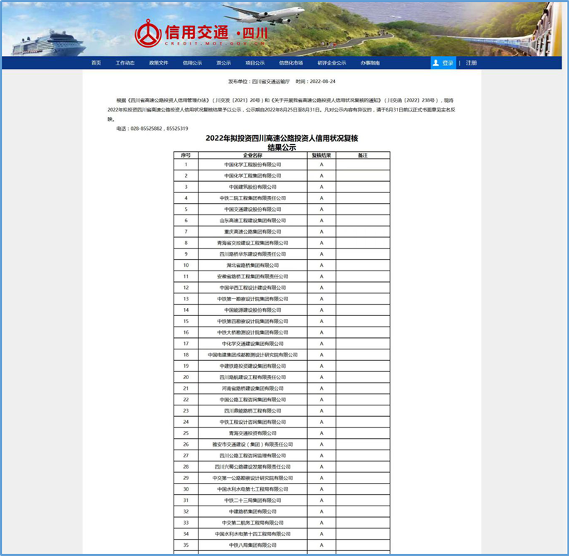 雅安市交通建設(shè)(集團(tuán))有限責(zé)任公司及下屬四川康藏路橋有限責(zé)任公司通過2022年擬投資四川高速公路投資人信用狀況 復(fù)核和初評“A”級評價(jià)