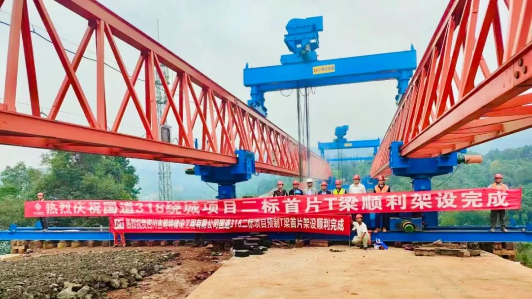 近日,由雅安交通建設(shè)(集團)有限責任公司下屬四川康藏路橋有限責任公司實施的國道318線名山區(qū)黑竹(成都界)至雨城區(qū)多營段改建工程首片長40余米、重120噸的預(yù)制T梁被精準吊裝安放到名山區(qū)二道河大橋0-1號橋墩上,標志著該項目進入橋梁上部結(jié)構(gòu)施工階段。