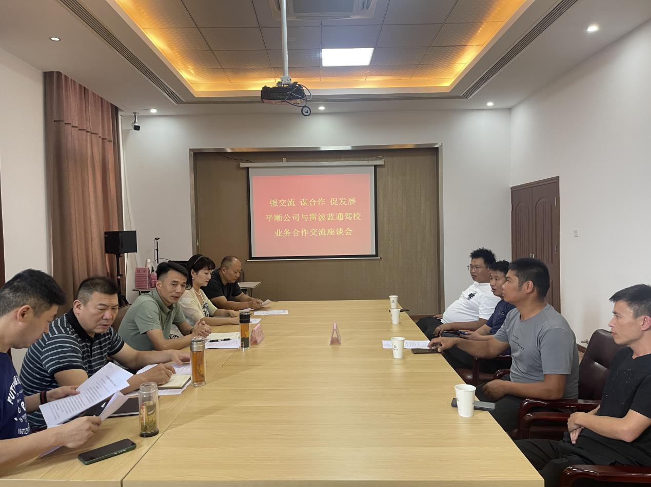 7月31日,雷波縣藍(lán)通機(jī)動(dòng)車(chē)駕駛培訓(xùn)有限責(zé)任公司總經(jīng)理陳能勇一行4人赴平順公司開(kāi)展實(shí)地調(diào)研,并與平順公司進(jìn)行業(yè)務(wù)合作座談?疾旖M對(duì)公司科二、科三考場(chǎng)進(jìn)行實(shí)地考察,對(duì)考試車(chē)輛進(jìn)行實(shí)車(chē)體驗(yàn),對(duì)服務(wù)品質(zhì)進(jìn)行現(xiàn)場(chǎng)了解,對(duì)業(yè)務(wù)合作事宜進(jìn)行深入交流溝通,并達(dá)成合作共識(shí)。