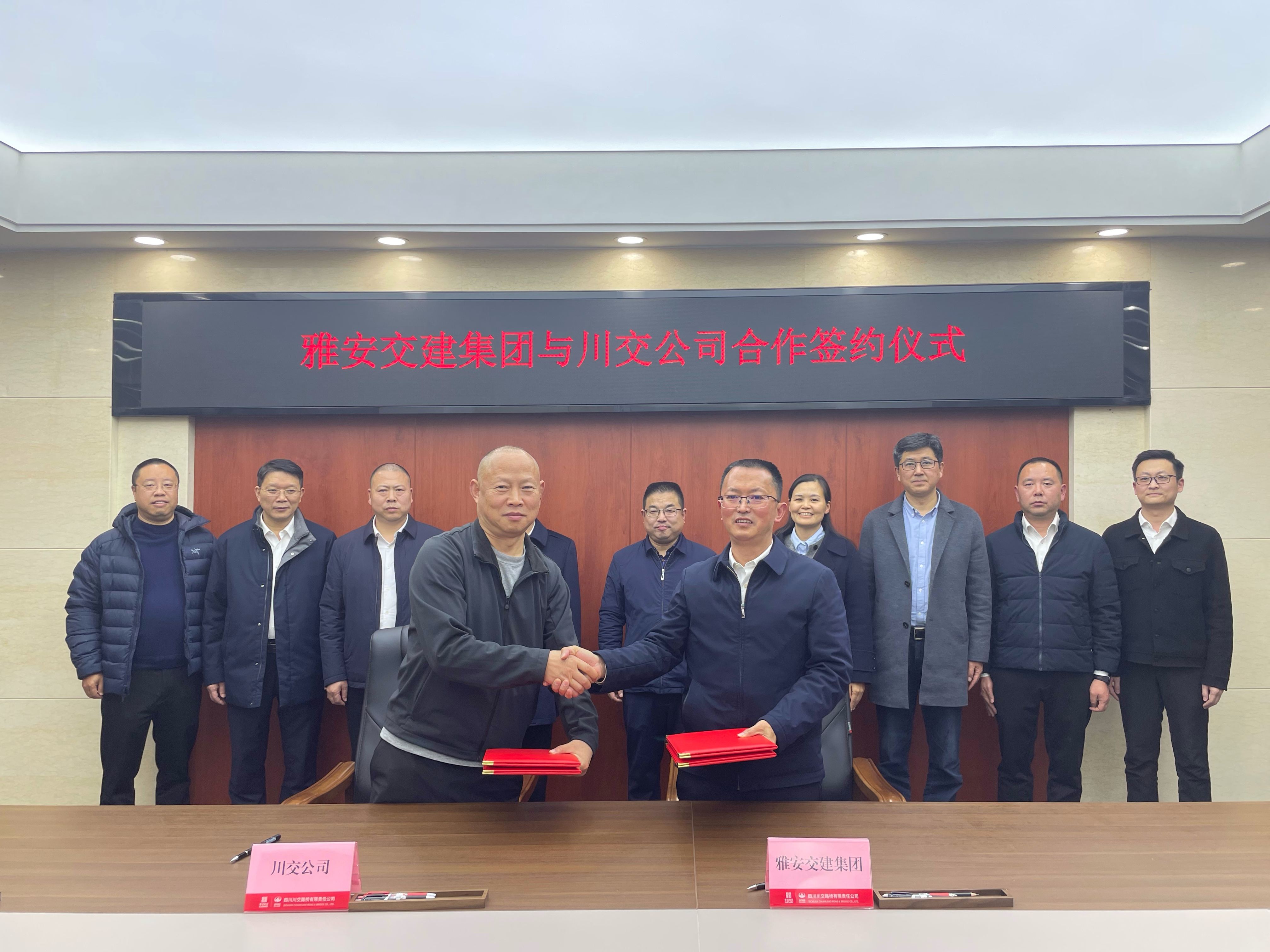 雅安交建集團(tuán)黨委委員、副總經(jīng)理丁春,辦公室、投資發(fā)展部、合規(guī)部、康藏路橋公司、項目管理公司主要負(fù)責(zé)人;川交公司黨委副書記、總經(jīng)理魯正偉,副總經(jīng)理羅德高,市場開發(fā)部、辦公室、工程管理部、內(nèi)控審計法務(wù)部、橋梁分公司主要負(fù)責(zé)人參與座談交流并見證合作協(xié)議簽署。