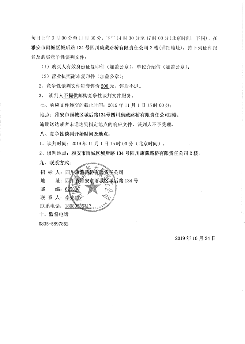 四川康藏路橋有限責(zé)任公司省道104線草壩至姚橋段改建工程項(xiàng)目部駐地板房采購競爭性談判公告