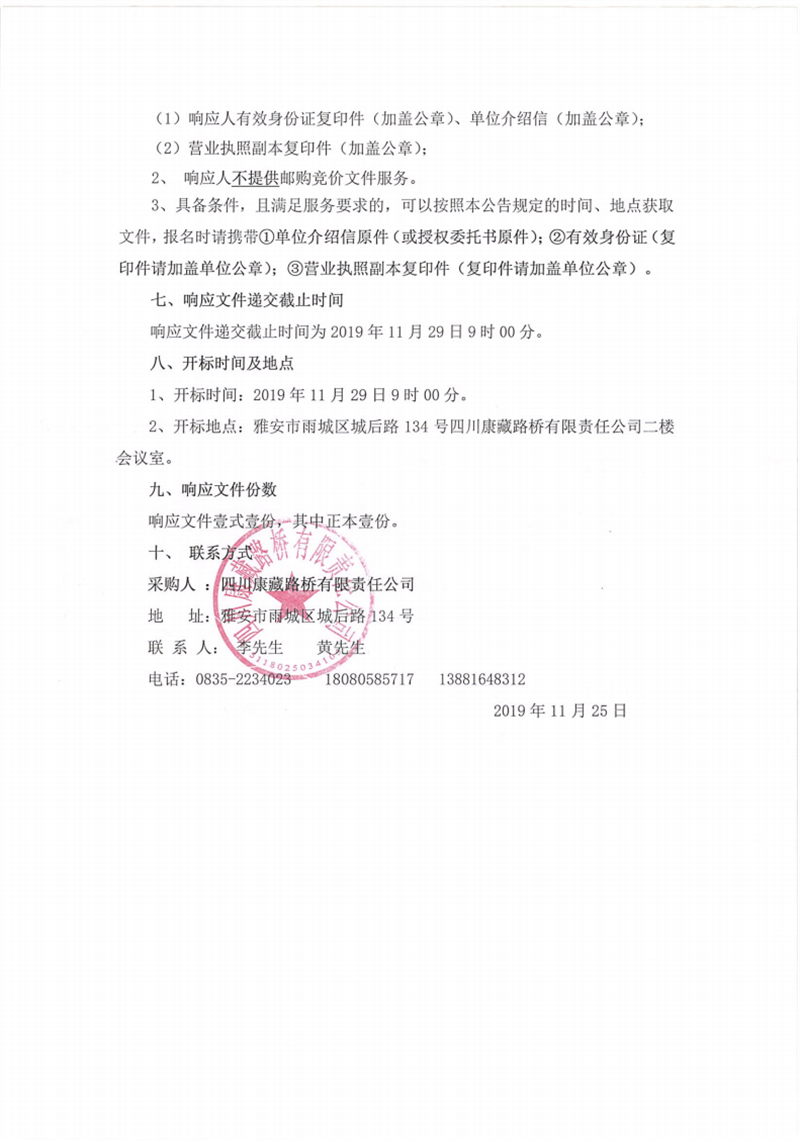 四川康藏路橋有限責任公司蘆山縣龍門、大川等8個鄉(xiāng)鎮(zhèn)基礎設施恢復提升工程項目施工勞務競價公告