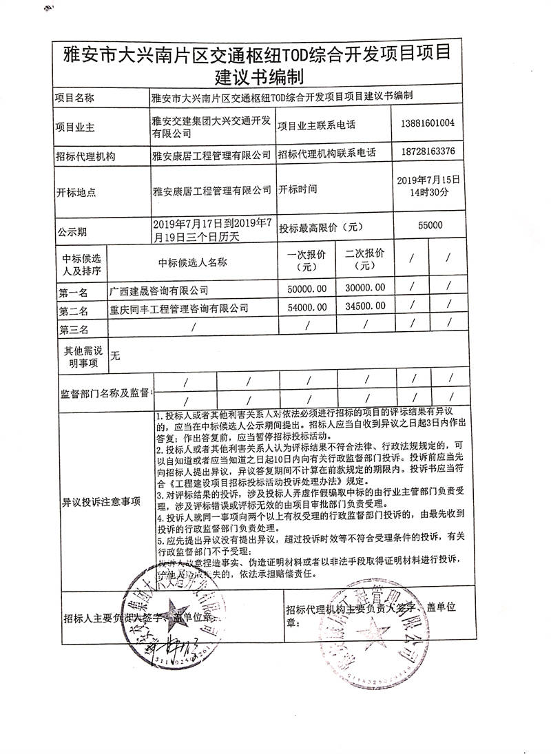 雅安交建集團(tuán)大興交通開(kāi)發(fā)有限公司雅安市大興南片區(qū)交通樞紐TOD綜合開(kāi)發(fā)項(xiàng)目項(xiàng)目建議書編制競(jìng)爭(zhēng)性談判結(jié)果公示