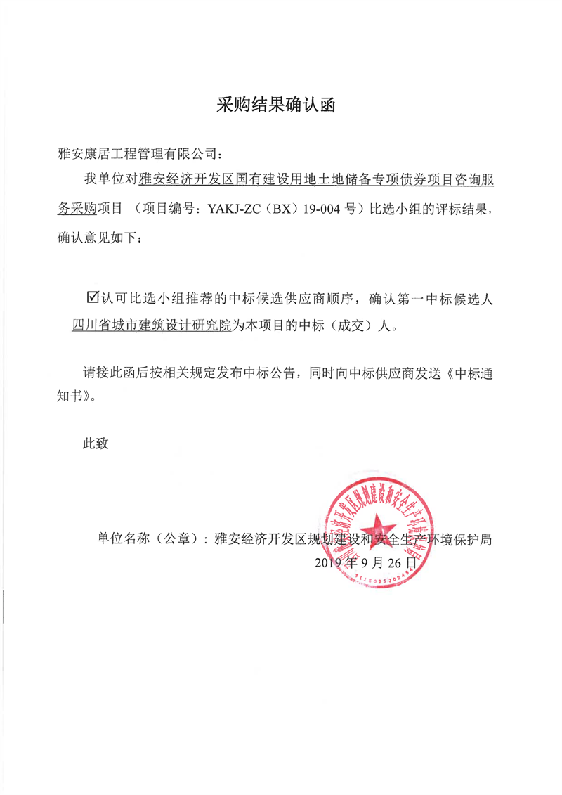 雅安經(jīng)濟開發(fā)區(qū)國有建設(shè)用地土地儲備專項債券項目咨詢服務(wù)采購比選結(jié)果公示