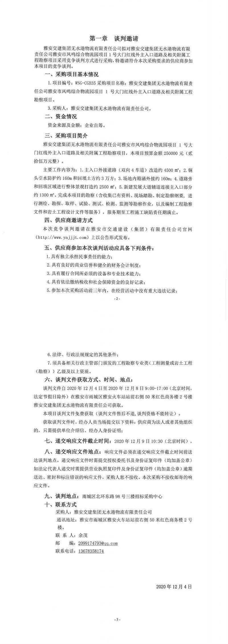 雅安交建集團(tuán)無水港物流有限責(zé)任公司雅安市鳳鳴綜合物流園項(xiàng)目1號大門紅線外主入口道路及相關(guān)附屬工程勘察項(xiàng)目談判公告