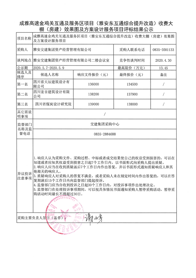 雅安交建集團大興交通開發(fā)有限公司雅安大興南綜合交通樞紐(TOD)項目臨建及場地平整工程項目評標結(jié)果公示