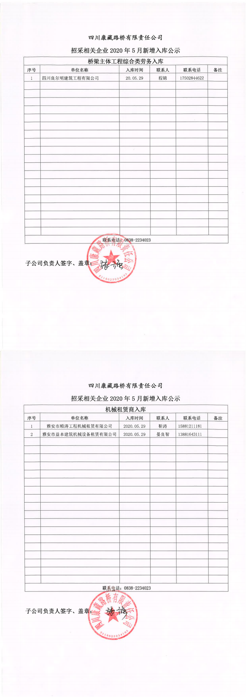 四川康藏路橋有限責(zé)任公司招采相關(guān)企業(yè)2020年5月新增入庫(kù)公示