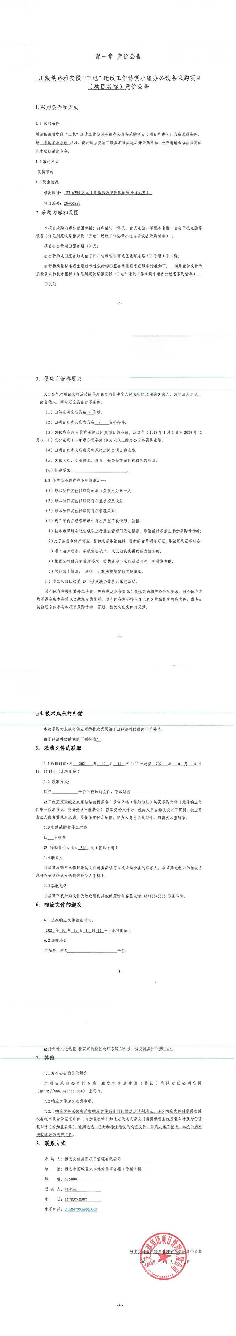 雅安交建集團(tuán)項目管理有限公司川藏鐵路雅安段“三電”遷改工作協(xié)調(diào)小組辦公設(shè)備采購項目競價公告