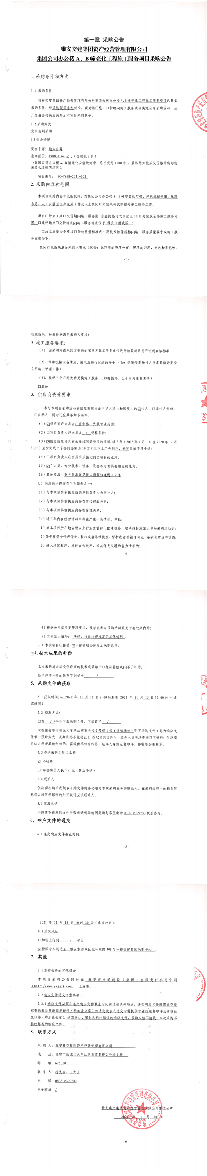 雅安交建集團資產(chǎn)經(jīng)營管理有限公司集團公司辦公樓A、B幢亮化工程施工服務項目采購公告