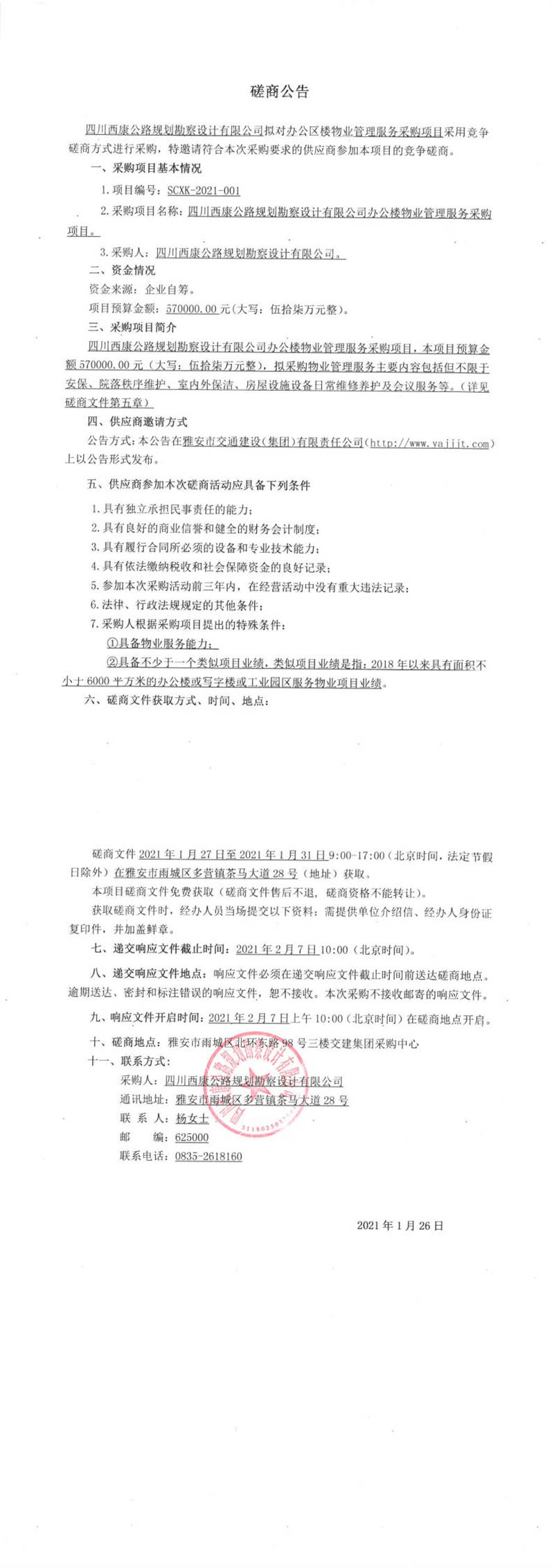 四川西康公路規(guī)劃勘察設(shè)計(jì)有限公司辦公樓物業(yè)管理服務(wù)采購項(xiàng)目競爭磋商公告