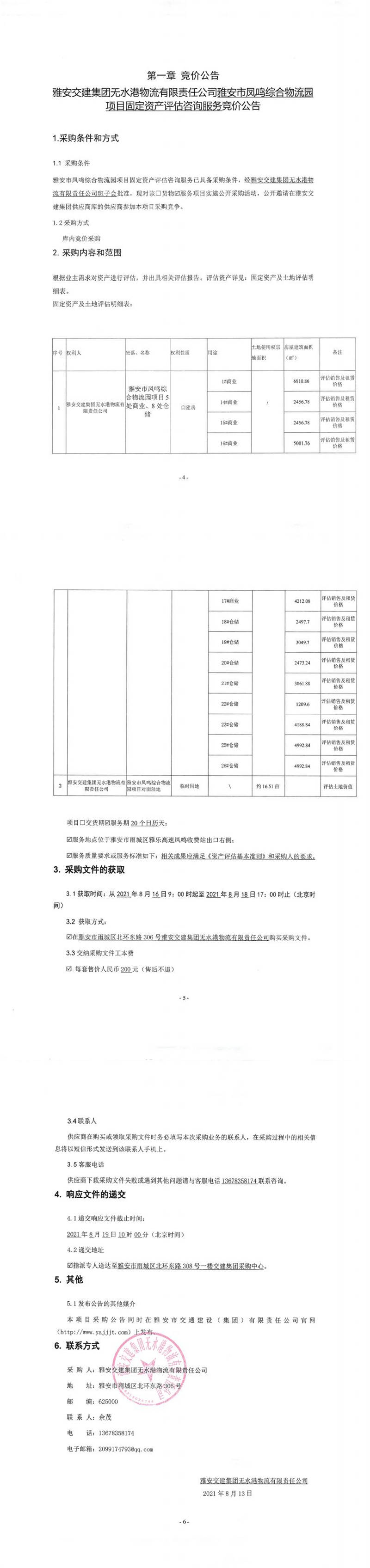 雅安交建集團(tuán)無水港物流有限責(zé)任公司雅安市鳳鳴綜合物流園項(xiàng)目固定資產(chǎn)評(píng)估咨詢服務(wù)競價(jià)公告
