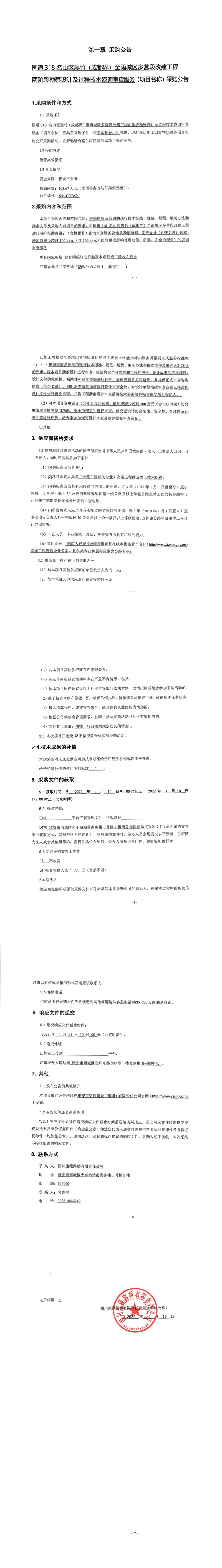 四川康藏路橋有限責(zé)任公司國(guó)道318名山區(qū)黑竹(成都界)至雨城區(qū)多營(yíng)段改建工程兩階段勘察設(shè)計(jì)及過程技術(shù)咨詢審查服務(wù)采購(gòu)公告