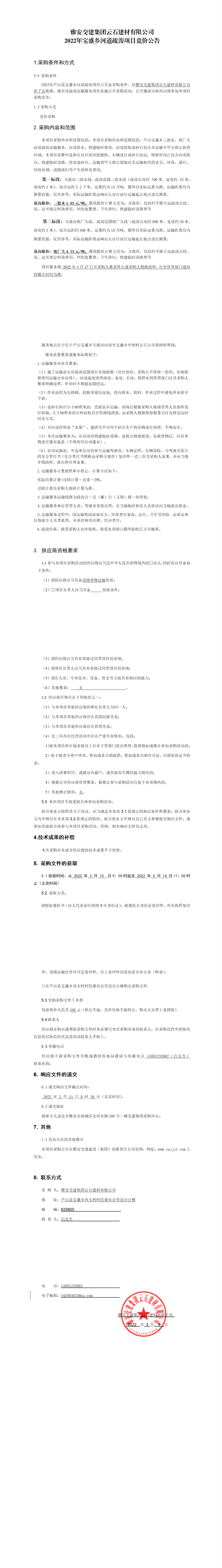 雅安交建集團(tuán)云石建材有限公司2022年寶盛鄉(xiāng)河道疏浚項(xiàng)目競價公告