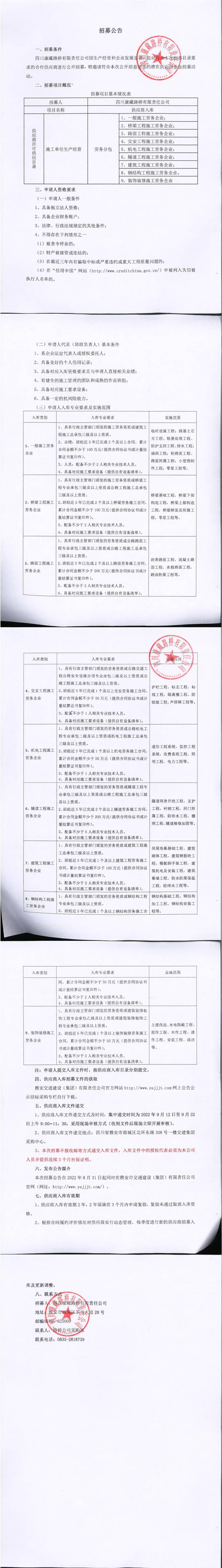 四川康藏路橋有限責(zé)任公司2022年第三季度供應(yīng)商入庫招募公告