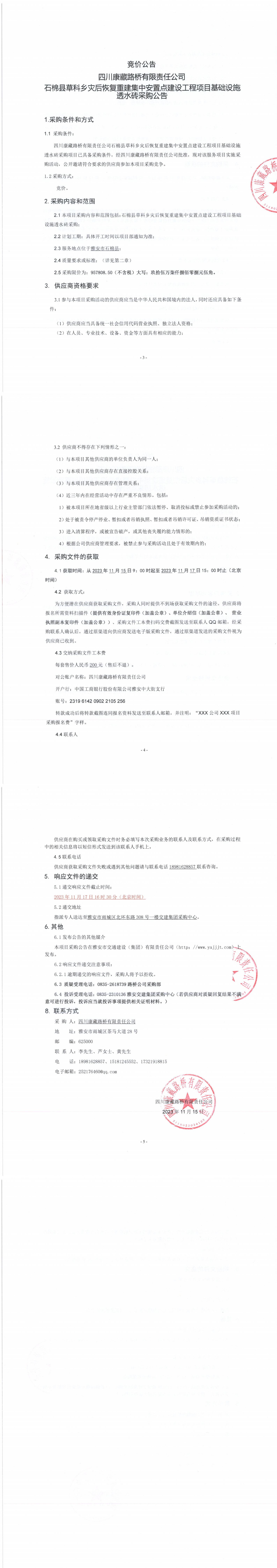 四川康藏路橋有限責(zé)任公司石棉縣X073兩河口至界碑石(甘孜界)災(zāi)后恢復(fù)重建工程項目路基路面輔助材料采購公告