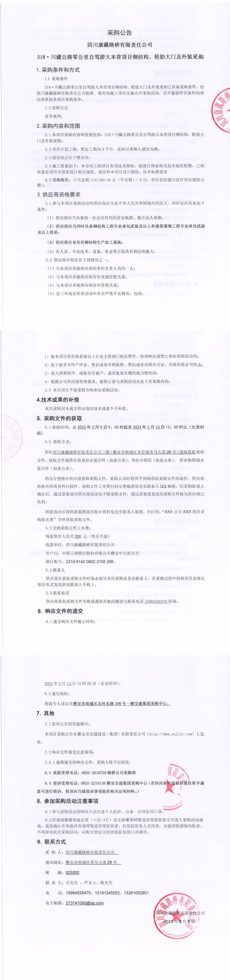 四川康藏路橋有限責(zé)任公司318.川藏公路零公里自駕游大本營(yíng)項(xiàng)目鋼結(jié)構(gòu)、輪胎大門(mén)及外裝采購(gòu)采購(gòu)公告