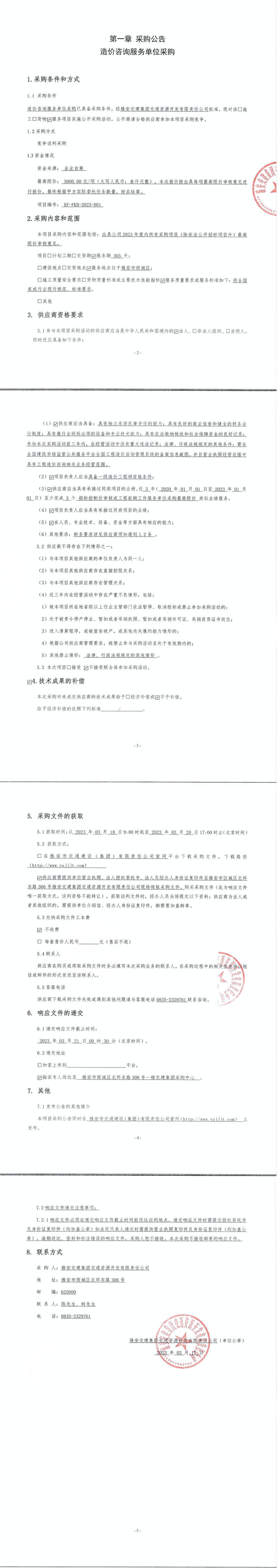 雅安交建集團交通資源開發(fā)有限責(zé)任公司造價咨詢服務(wù)單位采購公告