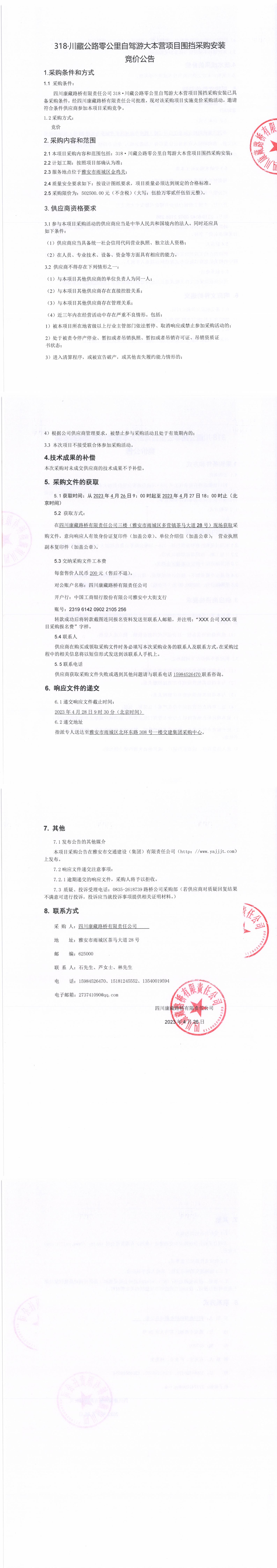 四川康藏路橋有限責(zé)任公司318·川藏公路零公里自駕游大本營(yíng)項(xiàng)目圍擋采購(gòu)采購(gòu)安裝競(jìng)價(jià)公告