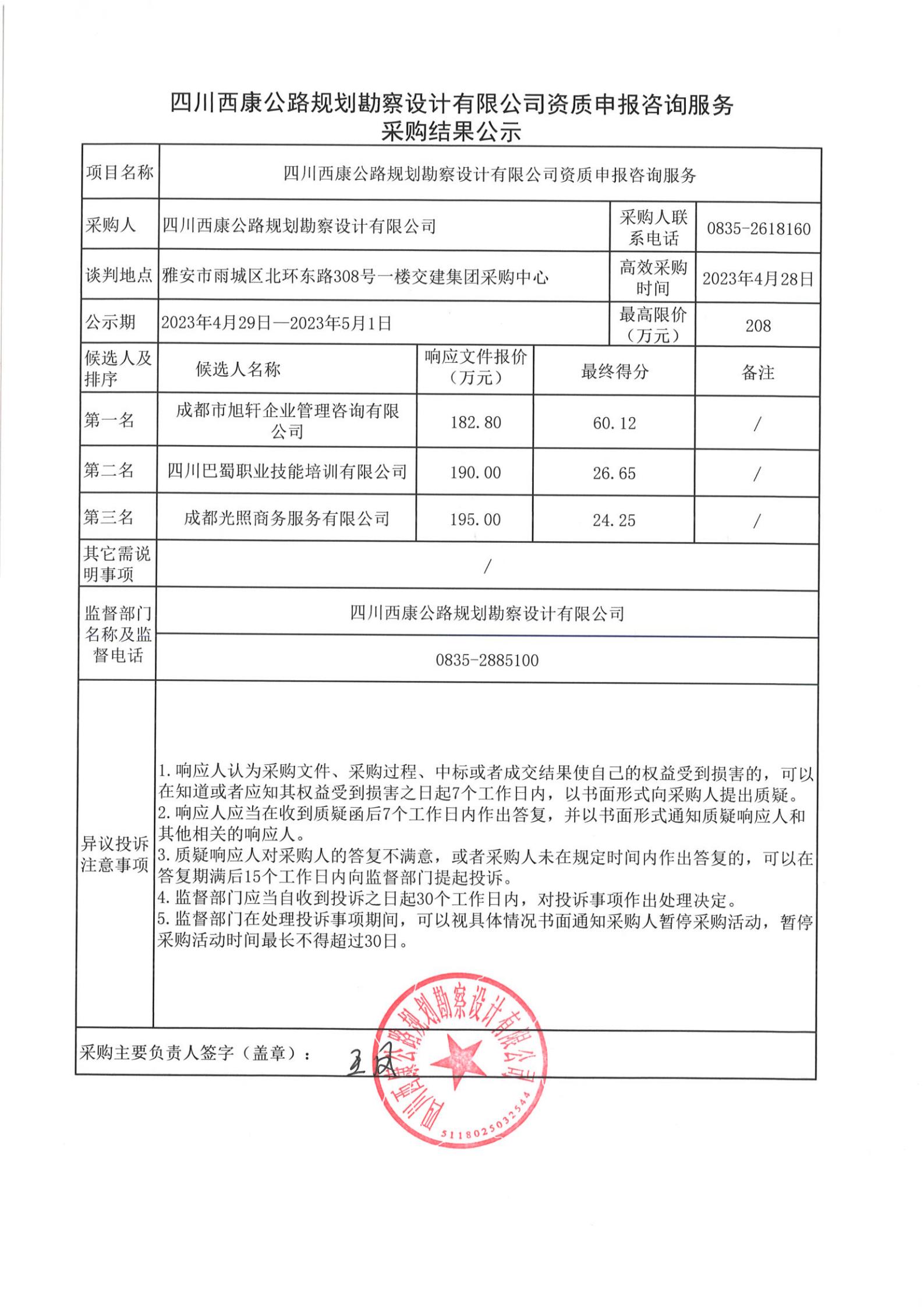 四川西康公路規(guī)劃勘察設(shè)計(jì)有限公司資質(zhì)申報(bào)咨詢服務(wù)采購(gòu)結(jié)果公示