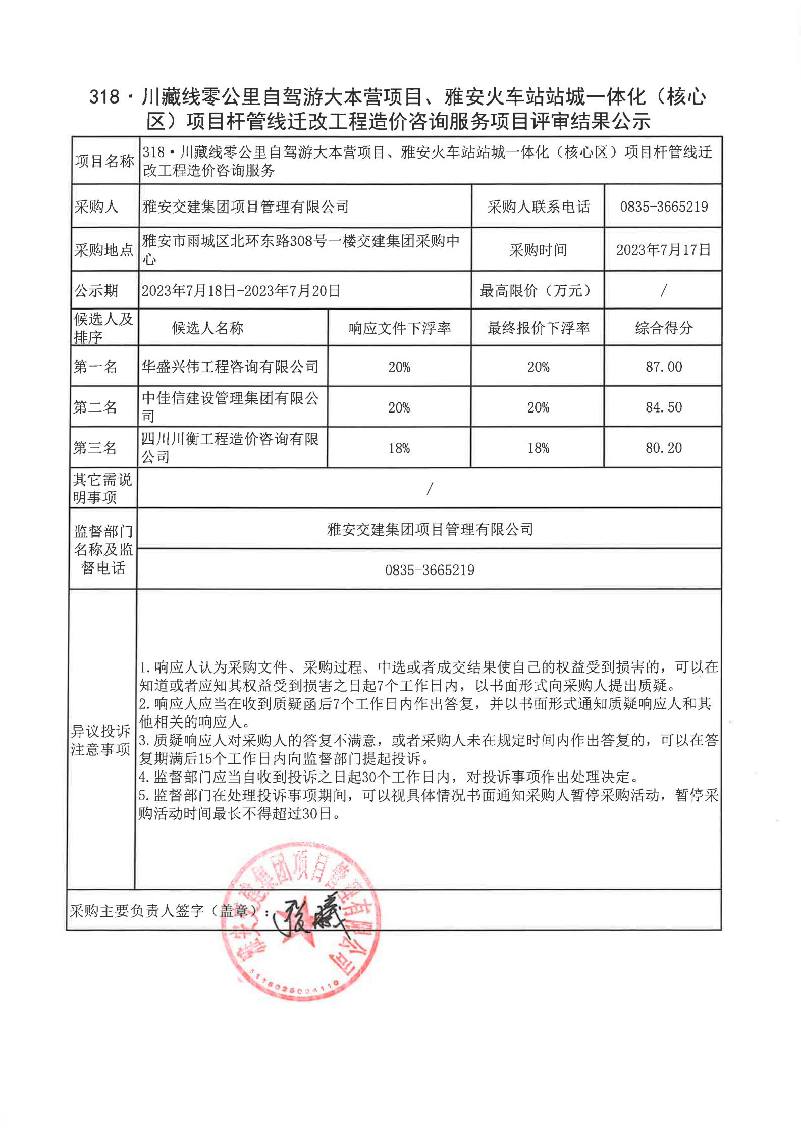 雅安交建集團項目管理有限公司318·川藏公路零公里自駕游大本營項目、雅安火車站站城一體化(核心區(qū))項目桿管線遷改工程造價咨詢服務(wù)項目評審結(jié)果公示
