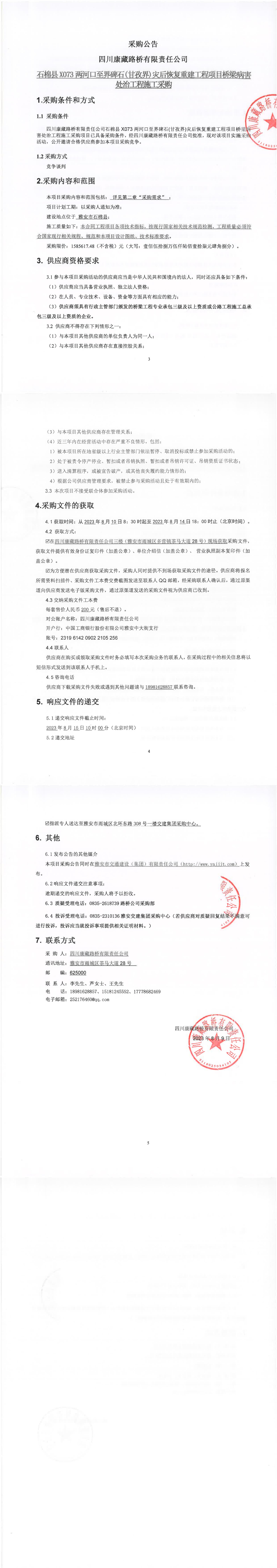 四川康藏路橋有限責(zé)任公司國道318名山區(qū)黑竹(成都界)至雨城區(qū)多營(yíng)段改建工程一標(biāo)段蓋板采購競(jìng)爭(zhēng)談判結(jié)果公示