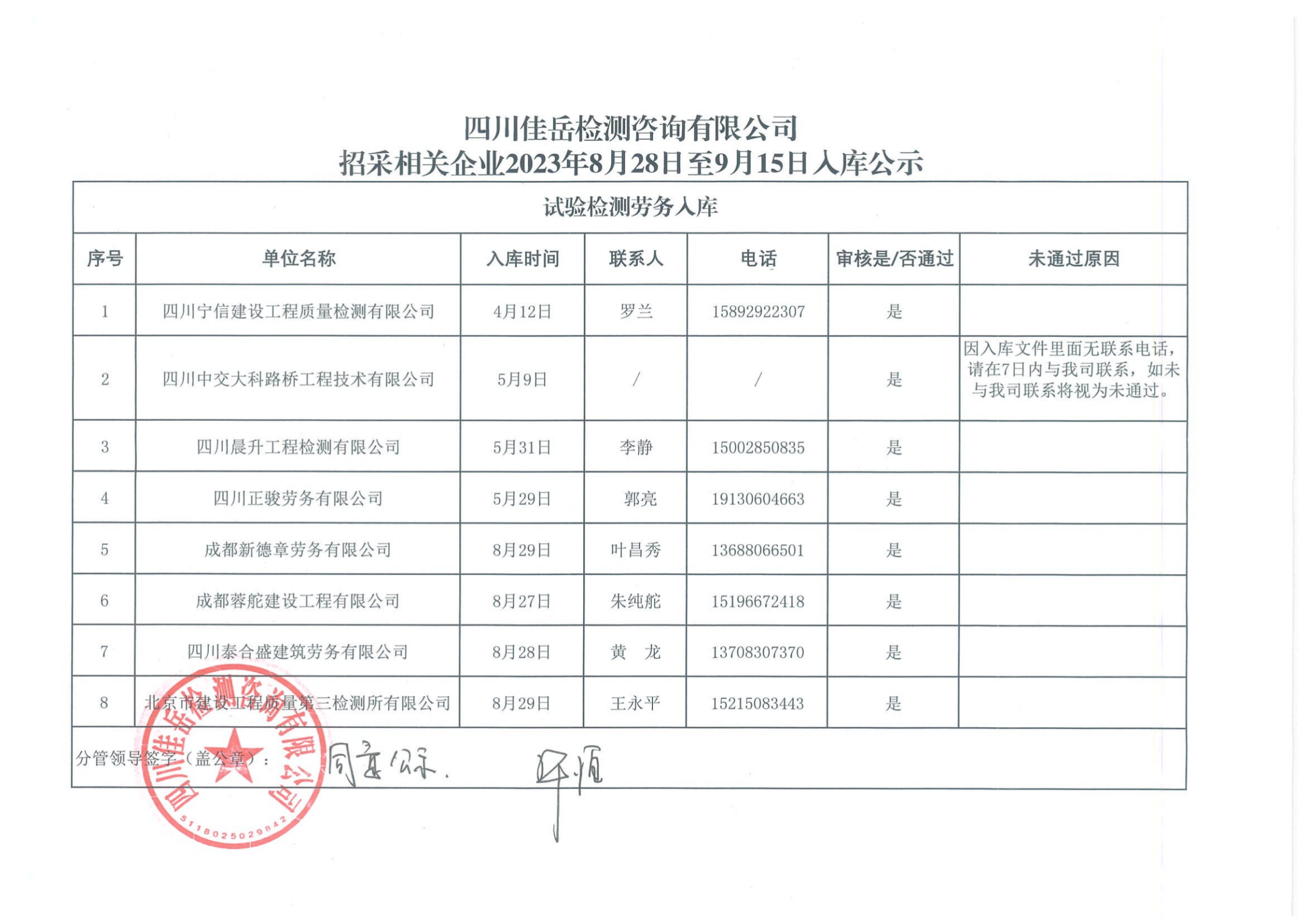 四川佳岳檢測咨詢有限公司招采相關(guān)企業(yè)2023年8月28日至9月15日入庫結(jié)果公示