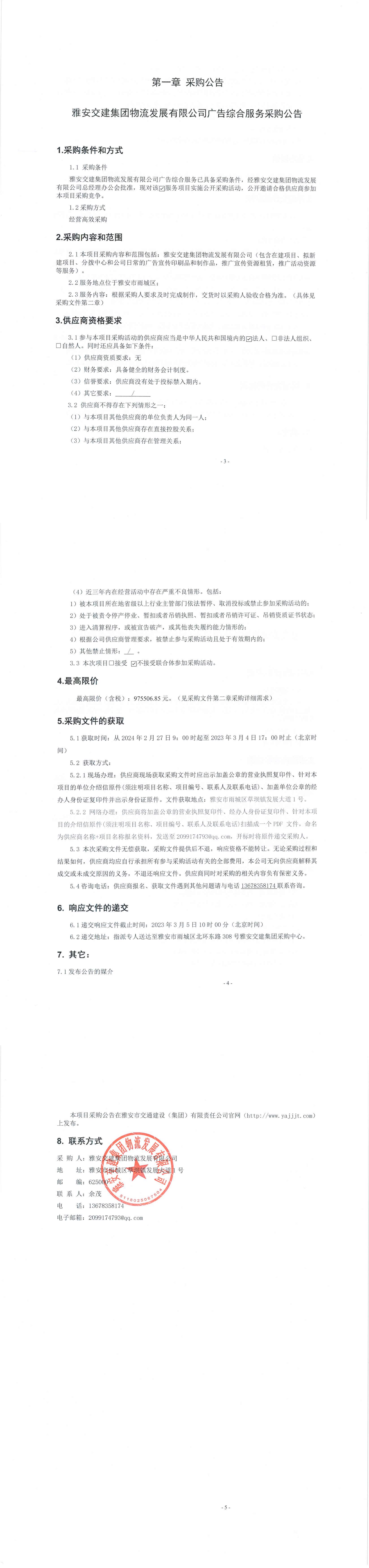 雅安交建集團物流發(fā)展有限公司廣告綜合服務采購公告