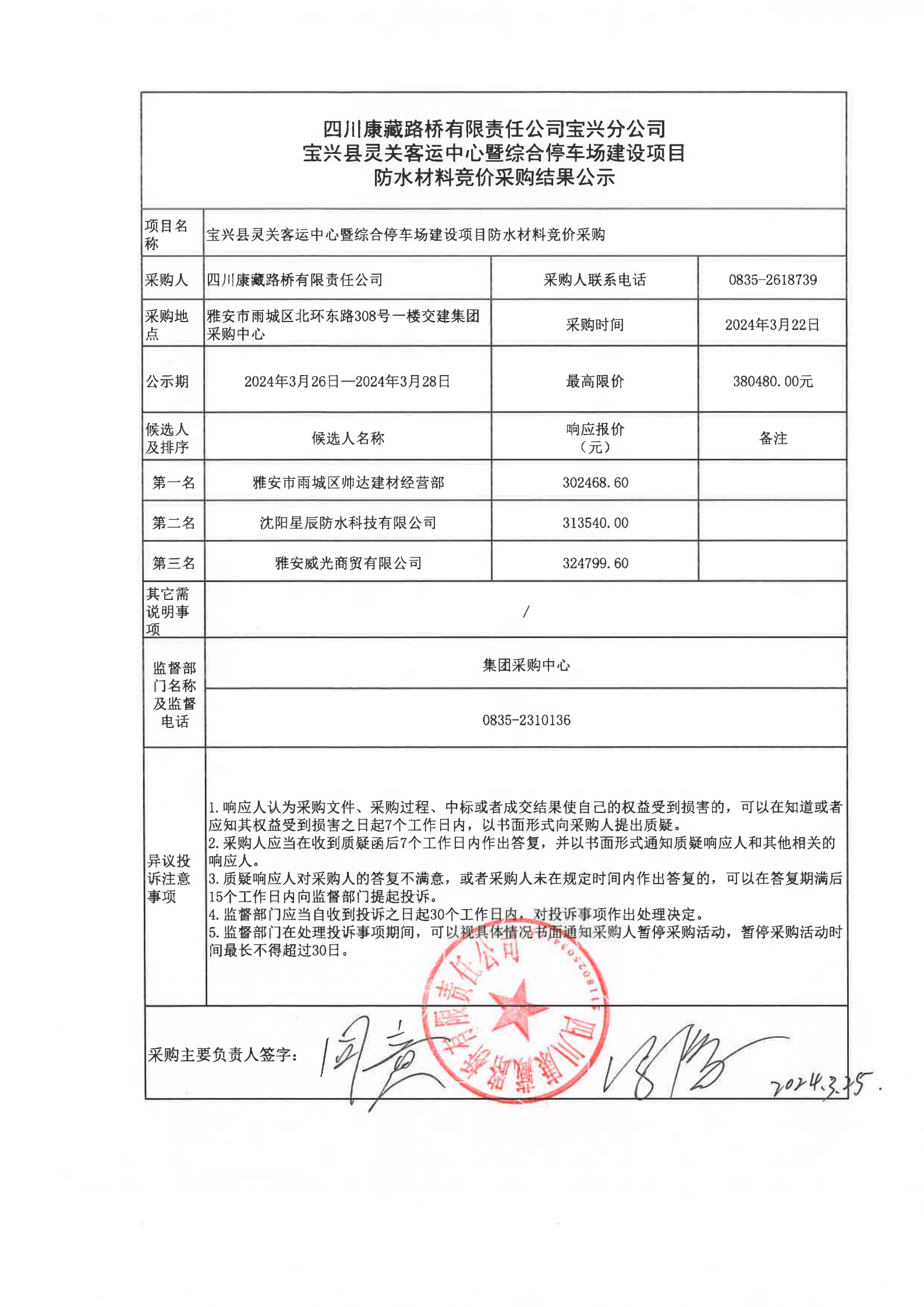 四川康藏路橋有限責(zé)任公司寶興縣靈關(guān)客運(yùn)中心暨綜合停車場建設(shè)項(xiàng)目防水材料競價(jià)采購結(jié)果公示