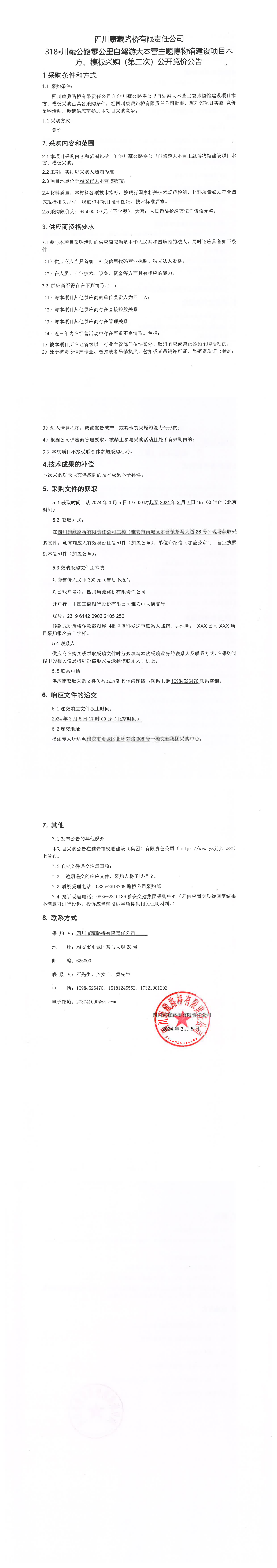 四川康藏路橋有限責(zé)任公司318·川藏公路零公里自駕游大本營主題博物館建設(shè)項(xiàng)目木方、模板采購(第二次)公開競價(jià)公告