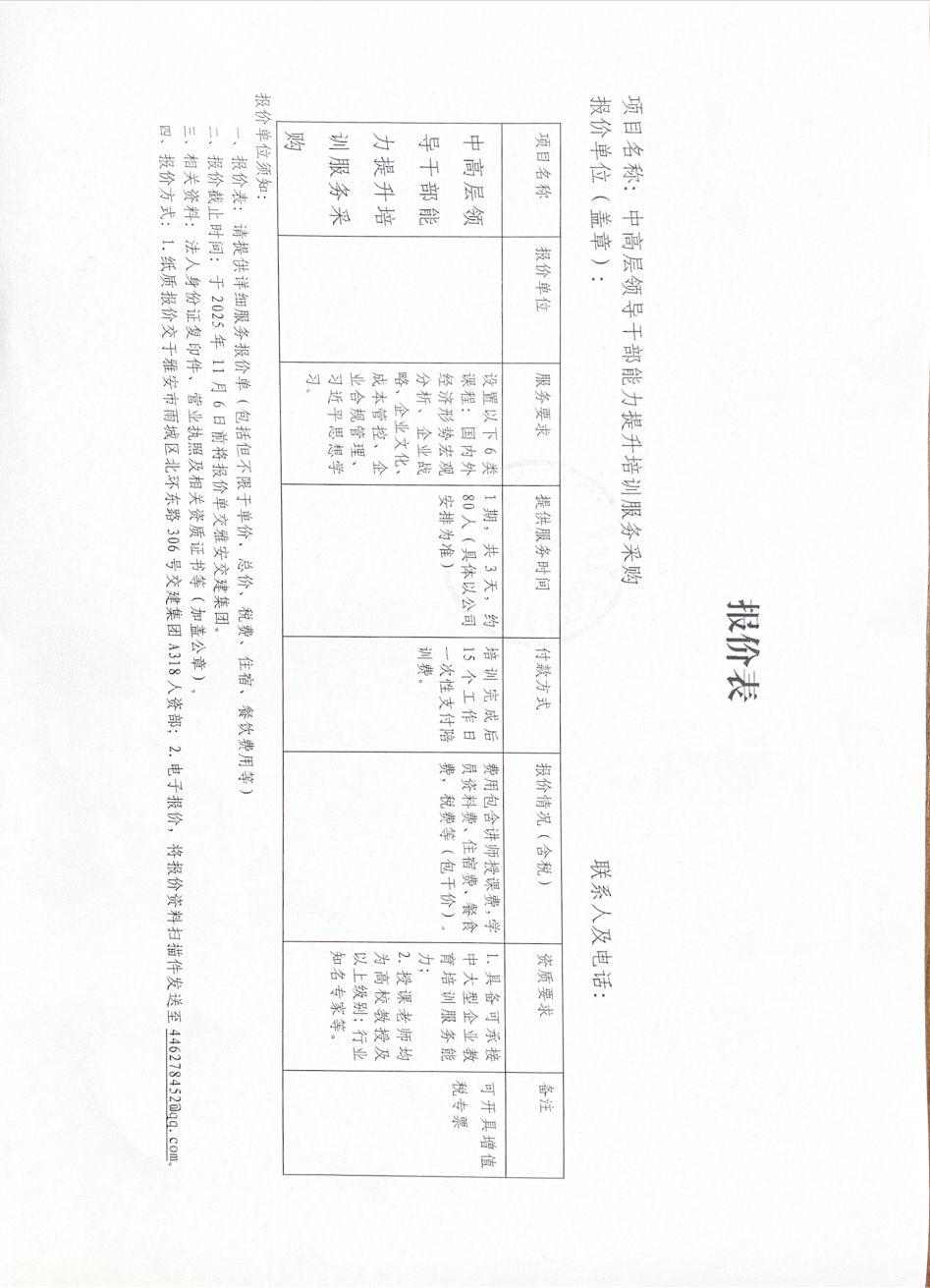 中高層領(lǐng)導(dǎo)干部能力提升培訓(xùn)服務(wù)采購詢價(jià)邀請