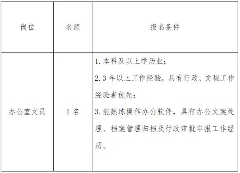 雅安交建集團(tuán)康居建設(shè)工程質(zhì)量與室內(nèi)環(huán)境污染檢測(cè)有限公司是雅安市交通建設(shè)(集團(tuán))有限責(zé)任公司下屬子公司,主要從事民用建筑室內(nèi)環(huán)境污染檢測(cè)業(yè)務(wù)。現(xiàn)根據(jù)公司業(yè)務(wù)發(fā)展需要,擬向社會(huì)公開招聘1名辦公室文員,現(xiàn)將有關(guān)事項(xiàng)公告如下: