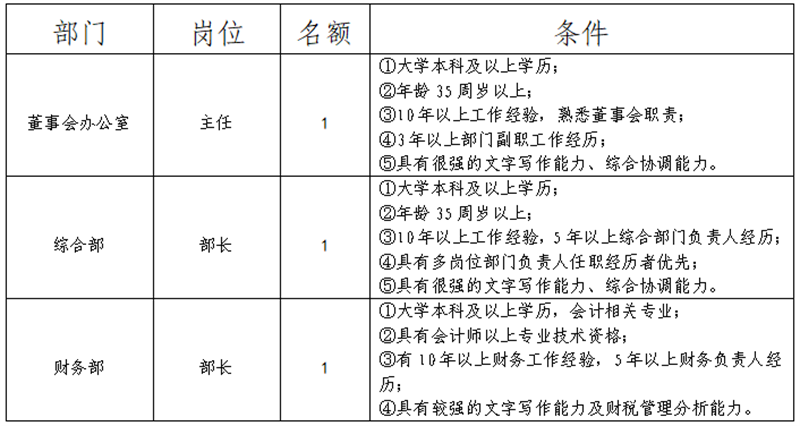 雅安市交建集團(tuán)是市屬重點國有企業(yè),主要從事交通基設(shè)施建設(shè)、交通運(yùn)輸物流、建筑材料生產(chǎn)、資產(chǎn)經(jīng)營管理、檢驗檢測服務(wù)等業(yè)務(wù),根據(jù)公司業(yè)務(wù)發(fā)展需要,向社會公開招聘中層正職3名,F(xiàn)將有關(guān)事項公告如下: