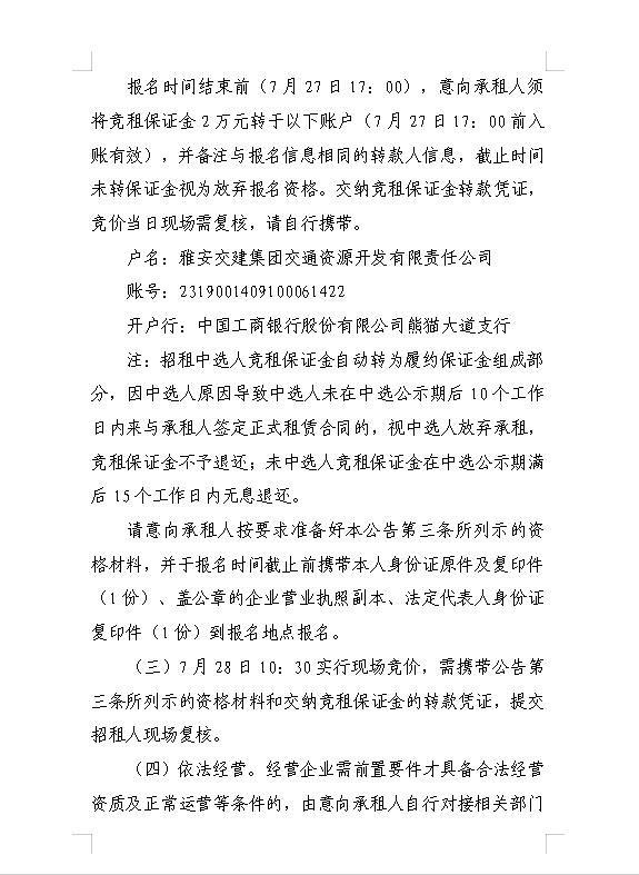 雅安交建集團交通資源開發(fā)有限責任公司雨名快速通道名山服務區(qū)場地(游樂類項目)招租公告